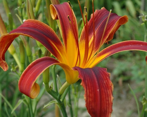 Antique ruby red, spidery daylily is a must for lovers of historic cultivars.