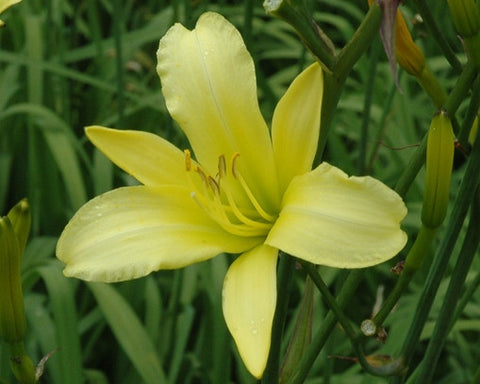 A diploid daylily species that is of the citrina type with multiple light lemon yellow fragrant blooms.