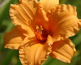 A small blossom with a big impact! Brilliant mini persimmon orange hemerocallis. Multiple American Hemerocallis Society awards: Donn Fischer Award for outstanding miniature cultivar, Honorable Mention Award, Award of Merit and the Stout Silver Medal Award 1980.