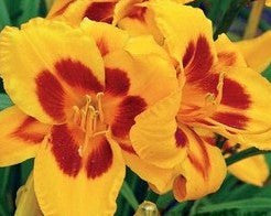 These large dazzling butter yellow daylilies have a distinct red purple eyezone. They also have a high bud count. American Hemerocallis Society Honorable Mention Award.