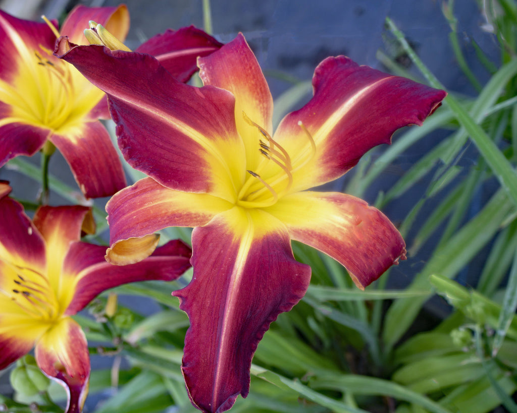 "Tetraploid daylily (Cribb 2004). Bloom diameter 8.5 inches (22 cm). Scape height 34 inches (86 cm). Mid bloom season with rebloom. Semi-evergreen winter foliage."