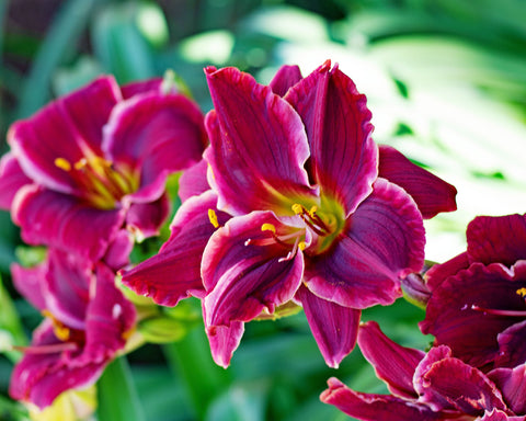 Small bloom daylily that is scarlet with a cream edge and green throat. Often doubles in hot weather. Limited.