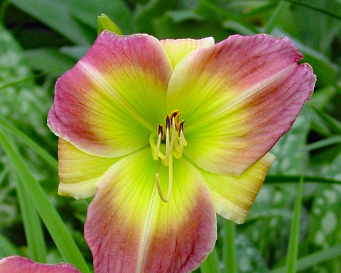 This lavender cream bicolour daylily is reblooming, slightly fragrant and oh so different. Lovely wide green throat.