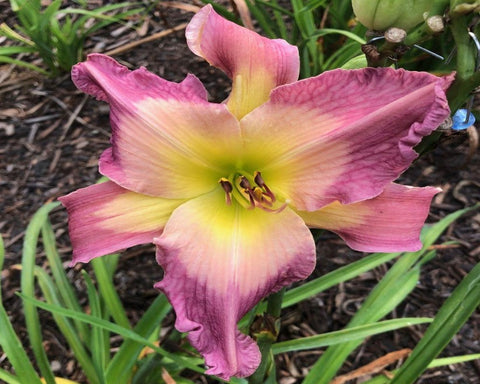 Tetraploid Daylily (Davisson J 2015). Bloom diameter 7.5 inches (19 cm). Scape height 34 inches (86 cm). Mid late bloom season. Semi-evergreen winter foliage. Fragrant.