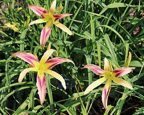 Diploid (Burkey 2001). Bloom diameter 9 inch (23 cm). Scape height 39 inch (99 cm). Mid bloom season. Dormant winter foliage. Spider Ratio 4.24:1.