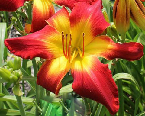 Stunning dark red hemerocallis with a wide yellow throat. Cascade-Spatulate form.