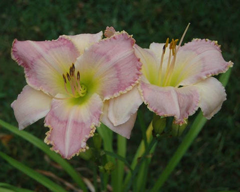 Light lavender pink with a large pale pink watermark and eyeliner edge in lavender. This isn't just a lovely bloom but an outstanding garden plant.