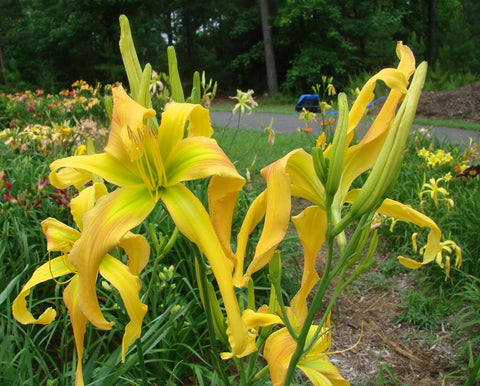 Gold yellow cascade with TONS of awards all duly deserved. American Hemerocallis Society Awards: AM 2014; HM 2009; L/W 2019; NRS 2014. Lenington All American Award 2021.
