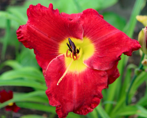 Tetraploid daylily (Hensley D 2011). Bloom diameter 6.5 inches (17 cm). Scape height 40 inches (102 cm). Mid late bloom season with rebloom. Dormant winter foliage. Fragrant. High bud count.