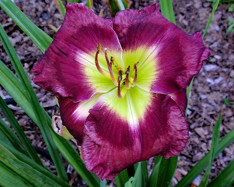 Diploid (Zahler 2008). Scape height 30 inches (76 cm). Bloom diameter 6.5 inches (17 cm). Late season bloom with rebloom. Fragrant. Dormant winter foliage.
