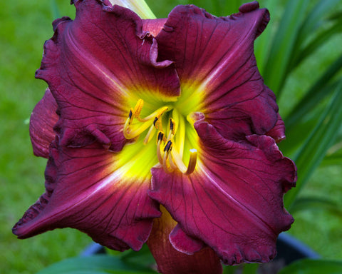 Violet purple self above chartreuse throat. Mid size fragrant bloom that packs a punch. Occasional polymerous blooms.