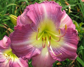 Dark orchid lavender hemerocallis with blue powder shading. Reblooming. Awards: HM 1990; JC 1986.