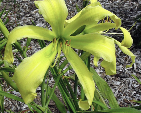 Diploid (Reinke 1990). Bloom diameter 8 inch (20 cm). Scape height 34 inch (86 cm). Early mid bloom season. Semi-evergreen winter foliage. Fragrant. Spider Ratio 4.80:1.