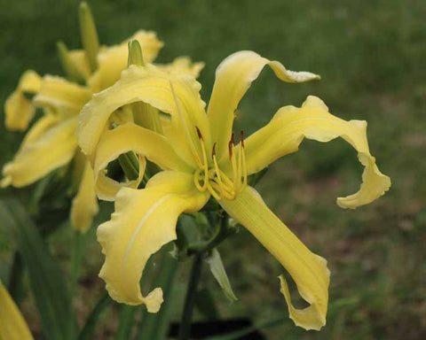 Big, impressive ruffled yellow bloom that is registered both as a spider and a cascade unusual form.